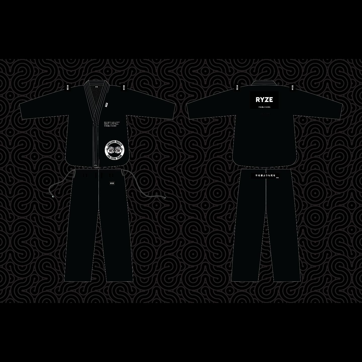 EMBROIDERED LOGO ON FRONT CENTER WOVEN LABEL PATCH ON BACK OF KIMONO